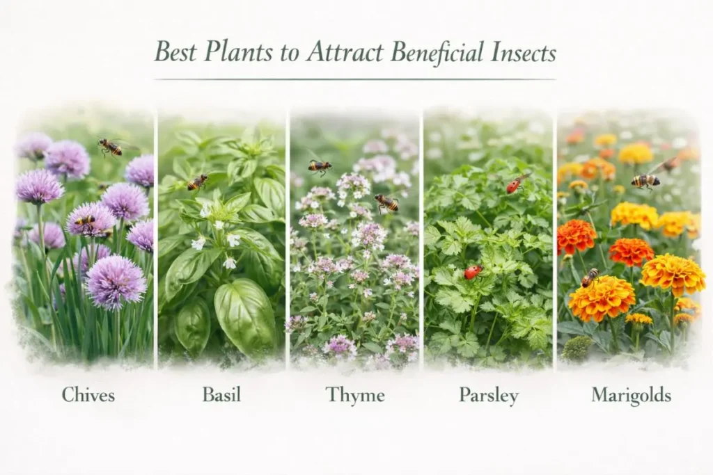 To create a garden that supports a thriving ecosystem, it’s important to plant species that attract beneficial insects. These plants provide nectar, pollen, and shelter for various beneficial insects, including pollinators, predators, and soil enrichers, all of which contribute to a healthier garden.