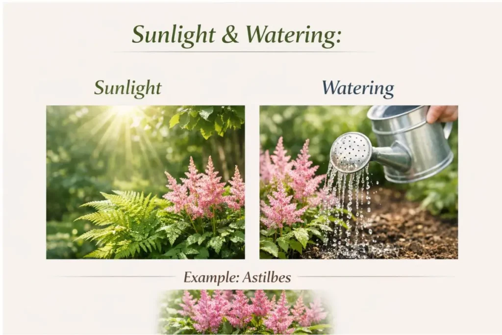 • Example: For Astilbes, consistent moisture is critical, so check the soil regularly to ensure it doesn’t dry out.