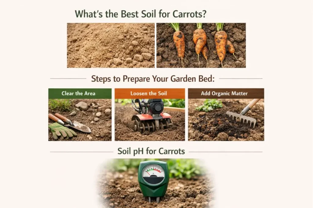 Carrots thrive in loose, sandy, or loamy soil. The soil should be well-draining and not too heavy or compacted. Heavy clay soils will lead to misshapen carrots that struggle to grow straight.