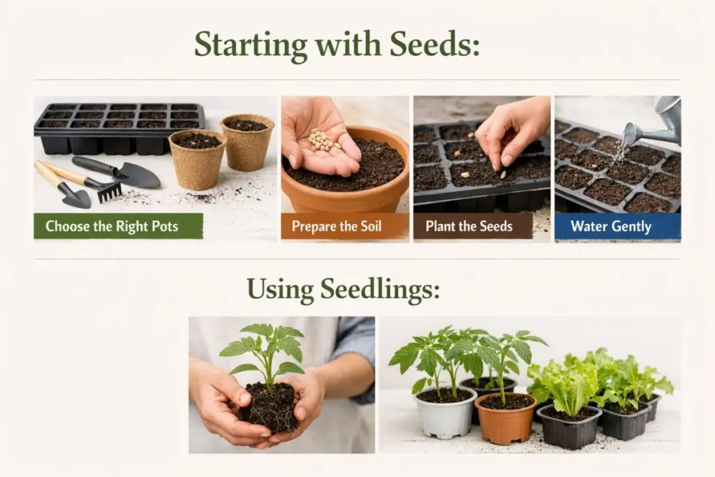 - Choose the Right Pots: Use shallow trays or small pots with drainage holes to start your seeds.
